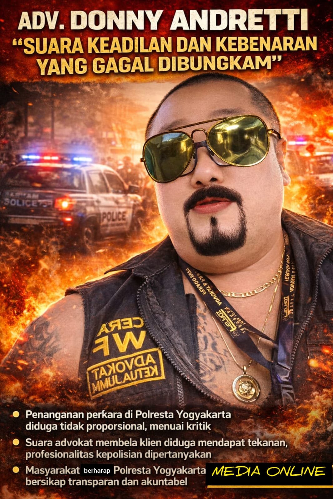 ADV. DONNY ANDRETTI “SUARA KEADILAN DAN KEBENARAN YANG GAGAL DIBUNGKAM”, POLRESTA YOGYAKARTA MENUAI SOROTAN MASYARAKAT