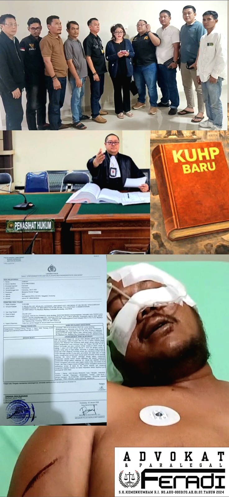 Kategori Perkara Dinilai Masuk Kejahatan Berat. FERADI WPI menilai peristiwa pembacokan terhadap Advokat Ade Rojali Pranata merupakan tindak pidana kejahatan terhadap tubuh dan nyawa, dilakukan secara bersama-sama, serta menggunakan senjata tajam.“Peristiwa ini bukan pelanggaran, bukan delik aduan, dan bukan tindak pidana ringan. Ini merupakan kejahatan serius yang mengakibatkan luka berat,” ujar Revan Pratama Wijaya, S.H. Kajian Pasal Pidana Berdasarkan KUHP Baru